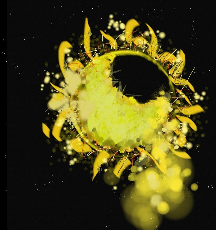 My mother entitled the work, “A Star with a Hole in it.” I think it’s quite wonderful and I have it on my computer as a screen saver. Also, let’s be real. It’s applicable. The anti-Trump crowd would think the title fits the man.